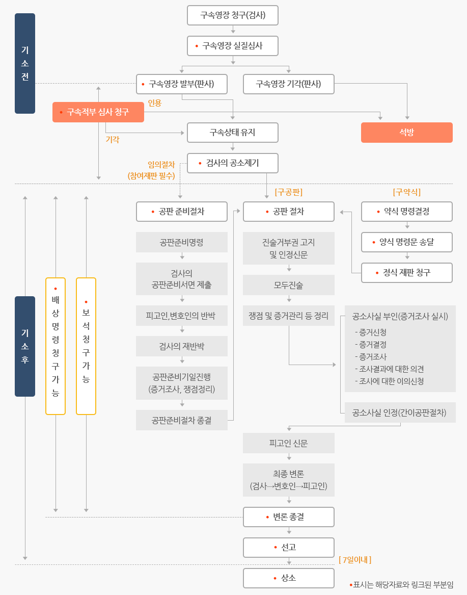 구체적으로는 피의자에 대한 수사기관의 수사, 검찰의 공소제기 여부 결정, 법원의 유무죄 판단 절차가 진행됩니다.